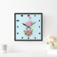 Pink Flamingo in Santa Hat Whimsical Christmas Square Wall Clock