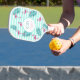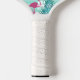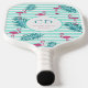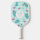 Pink flamingo mint green stripes palm leaves name pickleball paddle