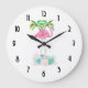 Pink Flamingo Palm trees and Floral Succulents Large Clock