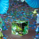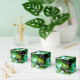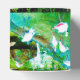 A party favor box for wildlife lovers with a gathering of flamingos. These pink birds are on a green background, a quirky digital image created from my original flamingo photograph ©Annabel Potter