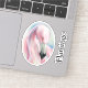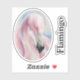 This contoured vinyl sticker features an oval image of a lovely pink flamingo rendered in soft pastel with green accents. There is also a bonus separate text sticker that is easy to personalise.