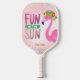 Cute fun in the sun pink flamingo pickleball paddle with silver sparkle accents. Customisable with your own text. Great gift for the pickle ball lover in your life!