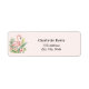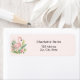 A blush pink background, decorated with a pink flamingo and tropical flowers and foliage. Personalise and add your name and address. Black letters.