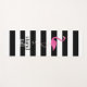 A bright pink flamingo and type that says stand tall, decorates this yoga mat on a black and white striped background, making it perfect for you next yoga class. The saying, stand tall, on this yoga mat can easily be personalised to say any you prefer. The back of this reversible mat is further decorated with more pink flamingos, giving it a completely different look.