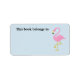 On the right is a pink flamingo bird standing on one leg. On the top left the text "This book belongs to" in black text.