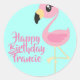 Pink Flamingo Tropical 1st Birthday Envelope Classic Round Sticker