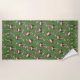 This pretty, original flamingo pattern has a retro Art Deco twist with a geometric motif. Made in bright shades of pink, green and grey on a field of dark green, this elegant, tropical pattern also includes fern fronds. Personalise this beach towel with your name. When you use the text template, your name will appear on both ends of the towel (upside-down at the top, for easy viewing while you're sunbathing). Head to the beach in style with this beautiful flamingo towel!