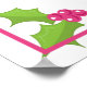 A whimsical tropical christmas poster. A fancy pink flamingo with a leg raised up. Wearing a pink santa hat and some seasonal decorative holly. Pink and white candy canes crossed together to form a heart. Text says Merry Christmas in green lettering.