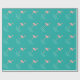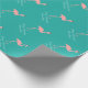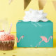 Pink flamingo tropical Christmas wrapping paper with personalised name and seasons greetings. Cute xmas giftwrap design with tropical bird wearing a Santa Claus hat. Funny Holiday wrapping supplies for men women and kids. Merry Christmas! Turquoise blue or custom background colour. Available in matte and glossy.