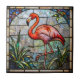 Pink Flamingo Tropical Faux Stained Glass Mosaic Ceramic Tile