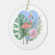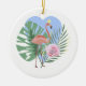 Pink Flamingo tropical leaf palm Ceramic Ornament