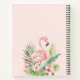 A feminine blush pink background decorated with a pink flamingo and tropical flowers and foliage. Personalise and add a name and your monogram initials.
