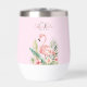 A girly blush pink background decorated with a pink flamingo and tropical flowers and foliage. Personalise and add a name and your monogram initials.