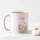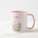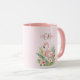 A blush pink background decorated with a pink flamingo and tropical flowers and foliage. Personalise and add a name and your monogram initials.