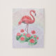 Pink Flamingo watercolor lilies Jigsaw Puzzle