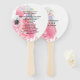 Tropical theme wedding program fan, with gorgeous artwork of a boho pink flamingo with colourful flowers and feathers, on it's head. Personalise the text for your wedding day. Matching products are available.