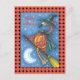 PINK FLAMINGO WITCH, FLYING OVER MOON ON A BROOM HOLIDAY POSTCARD