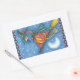 PINK FLAMINGO WITCH, FLYING OVER MOON ON A BROOM RECTANGULAR STICKER