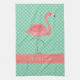 Pink Flamingo With Mint-Green Polkadot Tea Towel