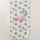 Pink Flamingo with Sunglasses Palm Trees Beach Towel