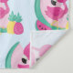 A tapestry with a pattern composed of a cute illustration - pink flamingo with watermelons and pineapples. Pink and green colour scheme. Summery and tropical.