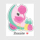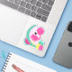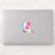 A vinyl decal with a cute illustration of a pink flamingo with some watermelons and pineapples. Pink and green colour scheme. Summery and tropical.