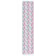 Table runner with a pattern composed of a cute illustration - pink flamingo with watermelons and pineapples. Pink and green colour scheme. Summery and tropical.