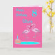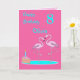 A unique card that you can personalise showing a slice of Birthday Cake and Candle and a couple of Pink Flamingo's. Personalise with the Name and Age and the message inside can be added to, or removed by following the "personalise this Template" prompt.