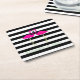 Pink Flamingos ,Black White Stripes,Personalised Square Paper Coaster