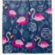 Graphic pattern of pink flamingos on a dark blue background