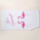 This tropical beach towel is accented with two cute pink flamingos, and Let's Flamingle, written in bright pink, making it perfect for your next pool party or day at the beach!
