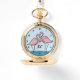 Pink Flamingos Monogram Art, or a Photo Gold Pocket Watch. Personalise this template with your initials, replace the cute flamingo art with your art or photos.