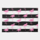 Pink Flamingos on Black and White Stripes Tea Towel