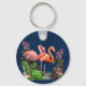 Pink Flamingos on Classic Blue Fabric Key Ring