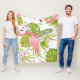 Pink flamingos, orchids: watercolor pattern. fleece blanket