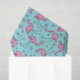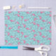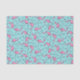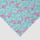 This tissue paper features a pattern of pink flamingos on an aqua blue background.