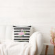 Pink Flamingos,Tropical Leaves Black Stripes Cushion