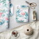 Tropical leaves and flowers with pink flamingos in a seamless pattern on a white background.
