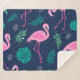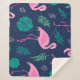 Pink flamingos, tropical palms, hand-drawn seamles sherpa blanket