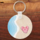 Cute pink flip-flops on the beach near the surf. The owner has gone swimming.