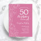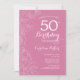Pink Floral 50th Birthday Party Invitation. Minimalist modern design featuring botanical outline drawings accents and typography script font. Simple trendy invite card perfect for a stylish female bday celebration. Can be customised to any age. Printed Zazzle invitations or instant download digital printable template.