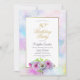 A blue and pink floral 80th birthday party invitation featuring a gold and pastel painted watercolor border.