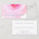 Chic, sophisticated business card design featuring artistic pink abstract watercolor background.