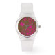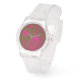 Elegant watches featuring a pink floral art design on a brown background. Choose from many styles and colours.