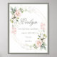 Floral Birth Print - Baby girl nursery room art décor. Elegant Birth Announcement Sign featuring a watercolor illustration of pink roses and green foliage.