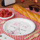 Design features spring-summer pink and purple flowers at the bottom of the round paper plate. Easy customisation process start with clicking button 'PERSONALIZE' that gives you the invitation automatically for your purpose. The title 'BABY in BLOOM' is not available as template for changing.