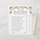 A fun baby shower game, Guess Who - Mummy or Daddy invites your shower guests to answer a list of questions about which parent will do certain things first, etc. Have the parents fill out their responses in advance on one of the game sheets and use that as the method of scoring the answers of your guest. Whoever gets the most answers correct wins a prize! This game sheet is embellished with blush pink floral bouquets and greenery to match the other items in this sweet baby shower collection.
