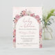 A baby is in bloom! Celebrate the new baby girl and mother-to-be with this elegant floral arch invitation in delicate shades of blush pink and white, matched with green and pink elegant script and serif fonts. Guests are sure to love receiving these gorgeous invites in the mail, perfect for floral baby showers, garden parties, baby in bloom themes, and other summer baby shower themes. Text is fully customisable, simple personalise with details for any occasion, including birthday parties, bridal showers, and baptisms.