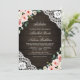 Pink Floral Barn Wood Lace QR Code Muslim Wedding Invitation