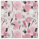 This design features a pattern including various beauty supplies on a pink polka dot pattern.